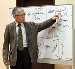 午後からの「パネルディスカッションⅠ」では、植田俊幸氏(鳥取県立厚生病院・精神保健福祉センター医師)に、精神科医療の歴史と実情についてお話いただいた後、田中大介准教授から、べてるの実験の再現性や、認知行動療法と当事者研究の関係性について問題提起がなされ、向谷地氏を交えて議論が交わされました。